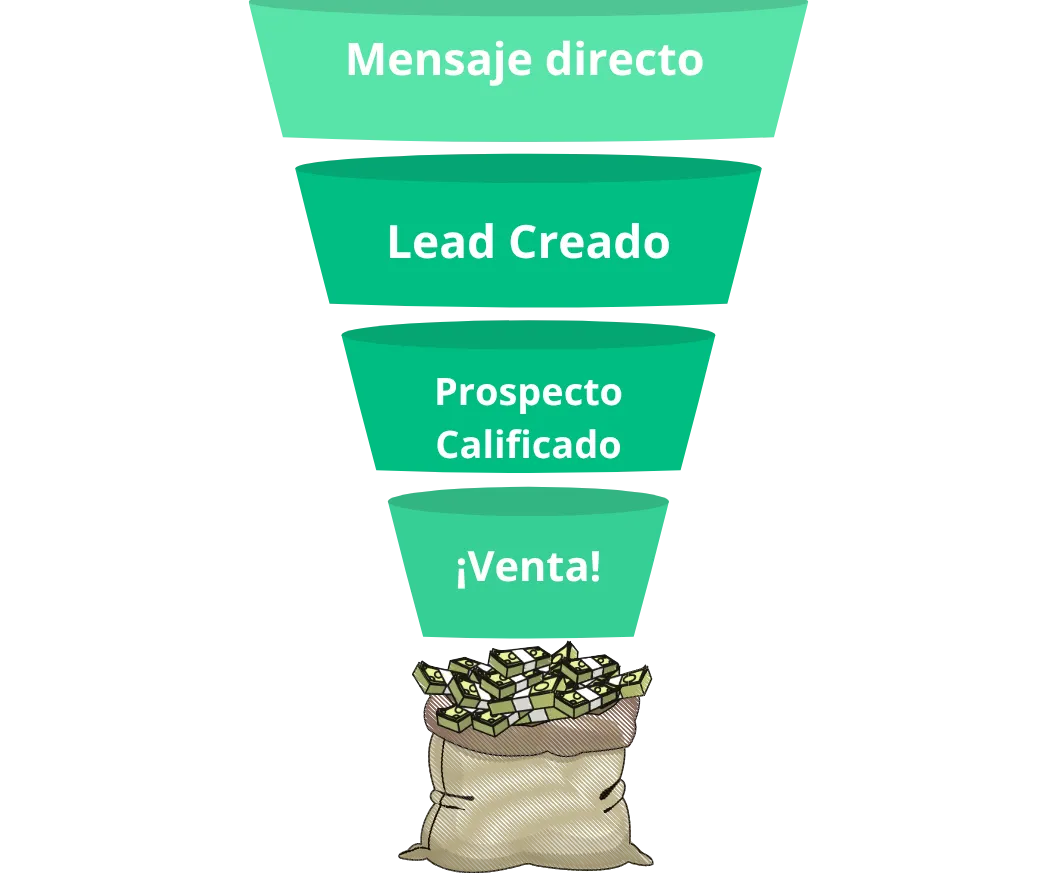 Sigue el camino de cada lead desde que te escribe hasta que se convierte en cliente. Ve en qué etapa está, cuánto vale y qué falta para cerrar.